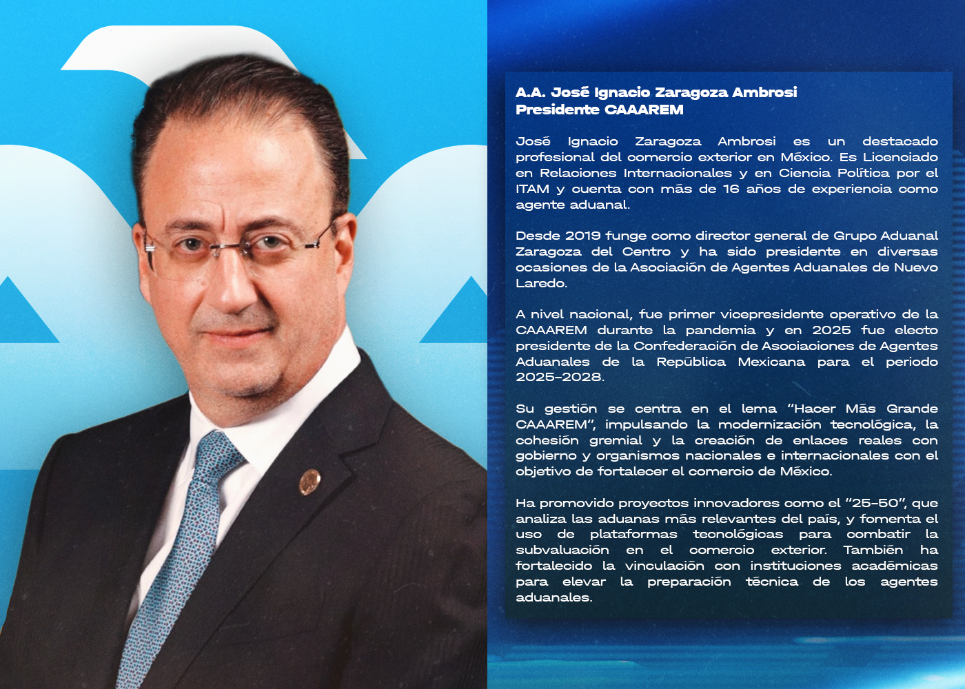 La Confederación de Asociaciones de Agentes Aduanales de la República Mexicana, CAAAREM, fundada el 8 de junio de 1938, representa y defiende los intereses de los Agentes Aduanales, especialistas en comercio exterior, y colabora con las autoridades en la modernización del sistema aduanero y la implementación de las mejores prácticas que facilitan el comercio y el despacho aduanal.